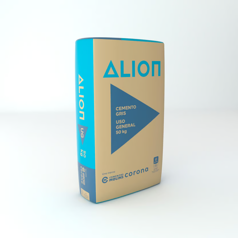 Cemento de uso general ALION para la elaboración de morteros y concreto de resistencia normal, Apto para elaborar todo tipo de acabados basados en cemento hidráulico, Cumple con los requisitos de la NTC 121 para Cemento Tipo UGy lo establecido en la NSR (Norma Sismo Resistente Colombiana)