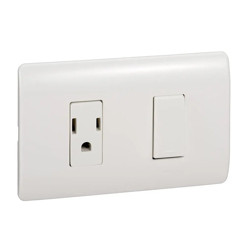 El interruptor sencillo Genesis tiene una capacidad de corriente de 16 amperios, lo que lo hace adecuado para controlar el suministro de energía a un circuito eléctrico específico. El tomacorriente incluido es de 15 amperios y está configurado con 2 polos (2P) y toma de tierra (T), lo que permite la conexión de dispositivos que requieran este tipo de conexión a tierra para mayor seguridad. Este dispositivo es comúnmente utilizado en instalaciones eléctricas residenciales y comerciales para proporcionar un punto de conexión eléctrica combinado con la capacidad de controlar el suministro de energía a través del interruptor. Es importante asegurarse de que la instalación y el uso de este dispositivo cumplan con las normativas eléctricas locales.