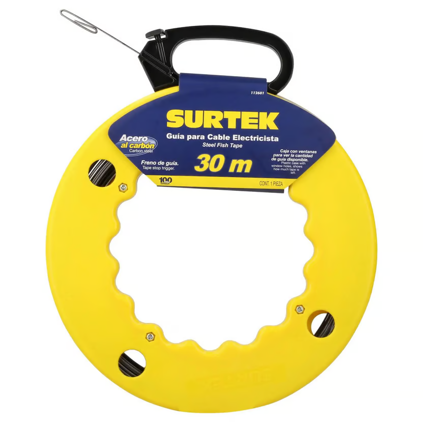 Garantía de 100 años, Calibre de alambre: 1.1/16 x 1/8″, Alambre de acero 1045, Riel que permite el manejo en ambas direcciones, Con ventanas de verificación, Permite comprobar la cantidad de guía utilizada, Longitud máxima: 30 m (96 ft), Diámetro de riel: 12″ (304 mm), El ojo en la punta agrandado, Permite acomodar hasta 5 alambres sin pelar, Calibre 12.